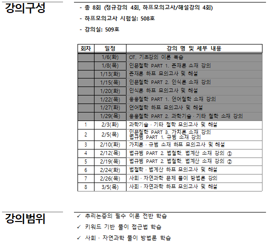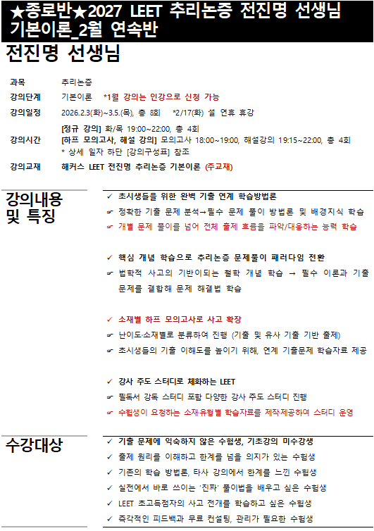 ★종로반★ [2027 기본이론] 2027 LEET 추리논증 전진명 선생님 기본이론_2월 연속반 2026.01.23
